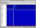 The event graph provides the viewer with a unique perspective on the flow of events in the system. Every control modifiying event modifies the flow of the graph. A vertical line marks a shift of control from or to the kernel. A horizontal line marks a time lap during which a process or the kernel was executing. Blue vertical lines are either an entry or an exit to a system call. Grey vertical lines mark entry of exit from a trap. White line mark entry or exit by way of interrupt. Orange horizontal line marks time spent in the kernel. Green horizontal time marks time spent in a process.